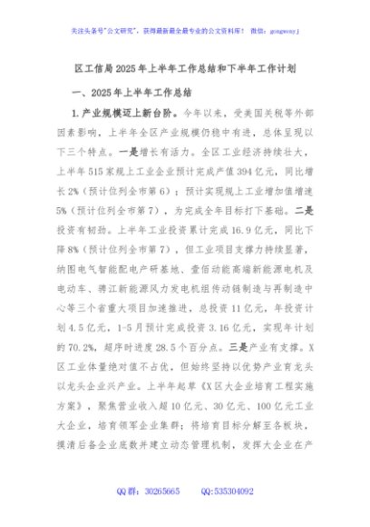 / 区工信局2025年上半年工作总结和下半年工作计划