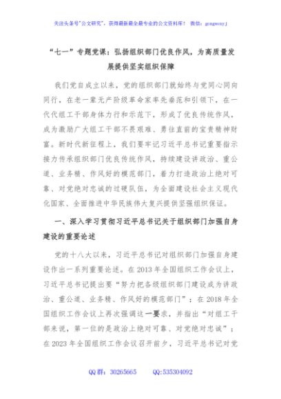 / “七一”专题党课:弘扬组织部门优良作风,为高质量发展提供坚实组织保障