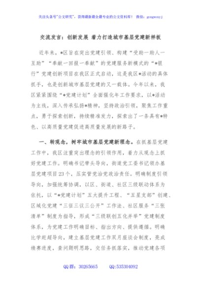 / 交流发言:创新发展 着力打造城市基层党建新样板