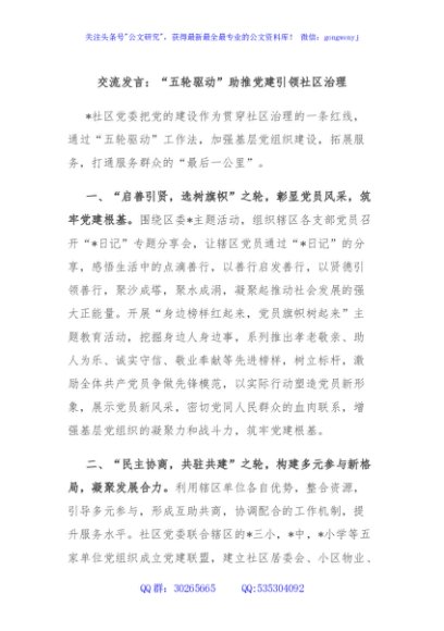/ 交流发言:“五轮驱动”助推党建引领社区治理