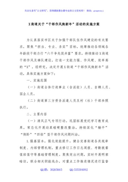 / X街道关于“干部作风焕新年”活动的实施方案