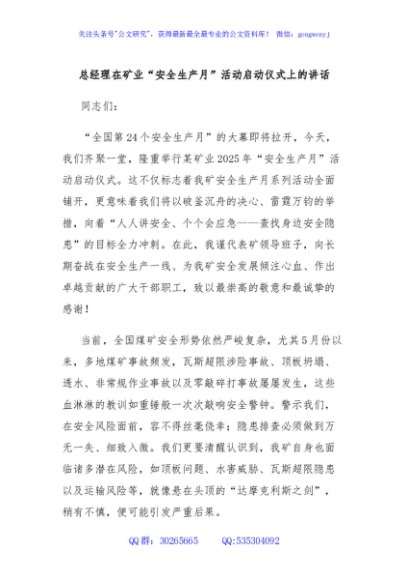 / 总经理在矿业“安全生产月”活动启动仪式上的讲话