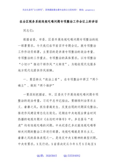/ 在全区税务系统违规吃喝问题专项整治工作会议上的讲话