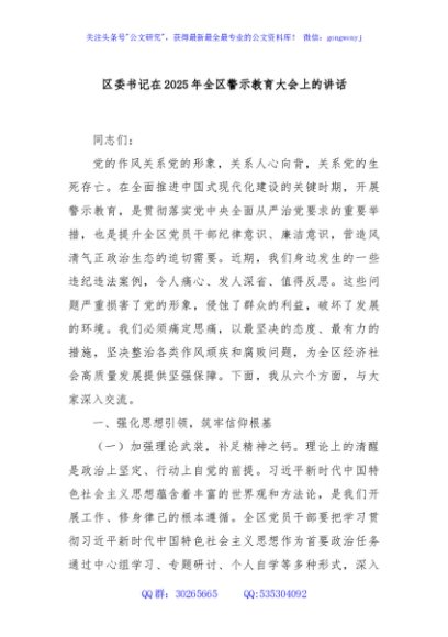 / 区委书记在2025年全区警示教育大会上的讲话