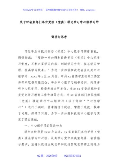 / 关于对省直部门单位党组(党委)理论学习中心组学习的调研与思考