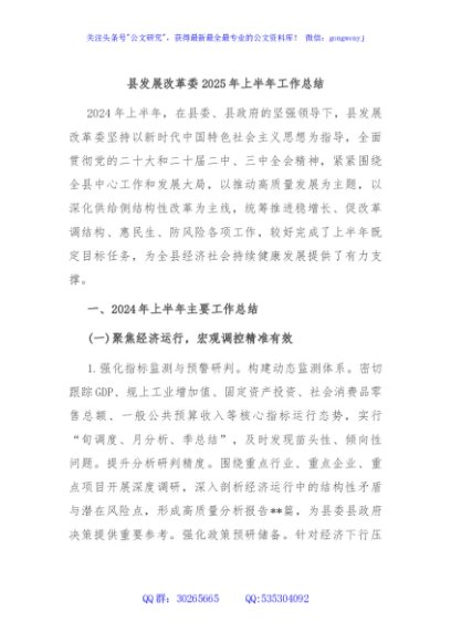 / 县发展改革委2025年上半年工作总结
