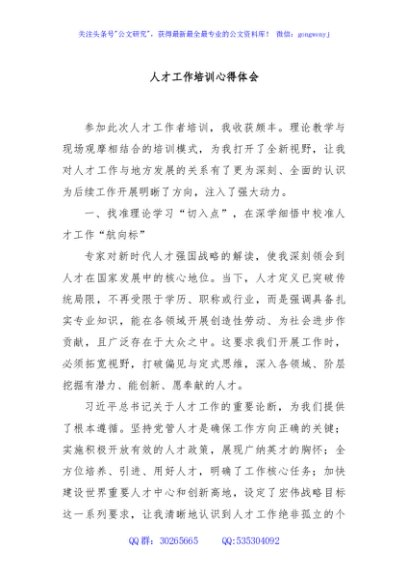 / 人才工作培训心得体会