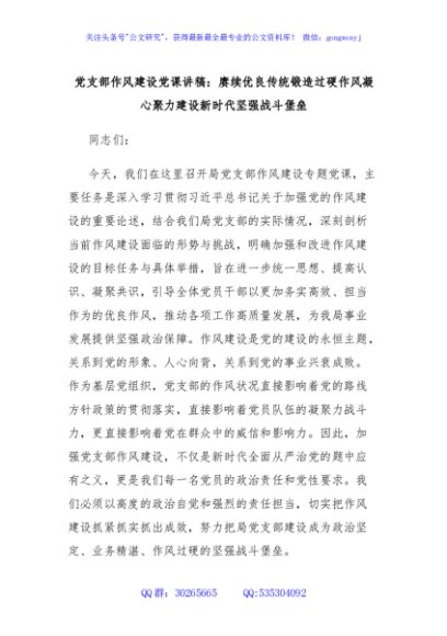 / 党支部作风建设党课讲稿:赓续优良传统锻造过硬作风凝心聚力建设新时代坚强战斗堡垒