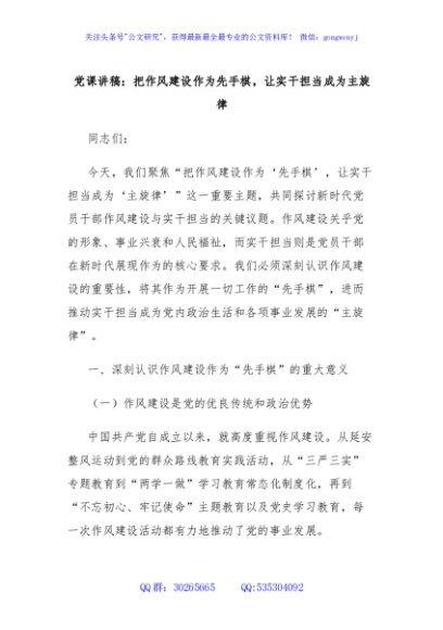 / 党课讲稿:把作风建设作为先手棋,让实干担当成为主旋律