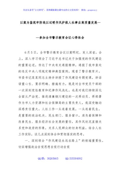 以案为鉴筑牢防线以过硬作风护航人社事业高质量发展——参加全市警示教育会议心得体会
