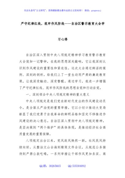 / 严守纪律红线,筑牢作风防线——自治区警示教育大会学习心得
