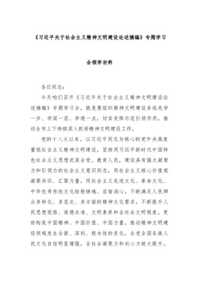《总书记关于社会主义精神文明建设论述摘编》专题学习会领学材料