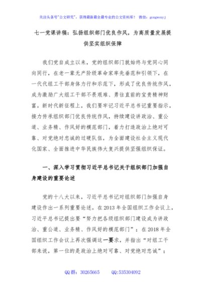 / 七一党课讲稿:弘扬组织部门优良作风,为高质量发展提供坚实组织保障