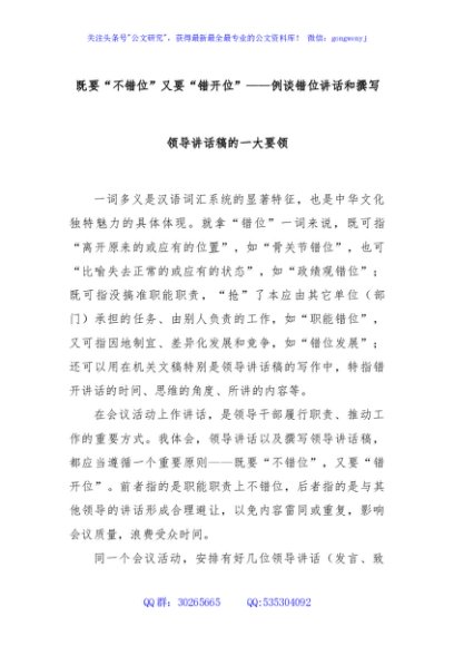 / 既要“不错位”又要“错开位”——例谈错位讲话和撰写领导讲话稿的一大要领