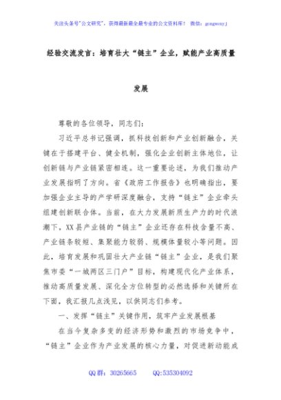 经验交流发言:培育壮大“链主”企业,赋能产业高质量发展