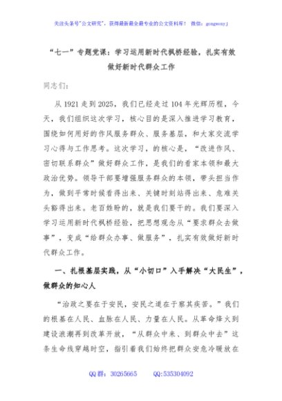 / “七一”专题党课:学习运用新时代枫桥经验,扎实有效做好新时代群众工作