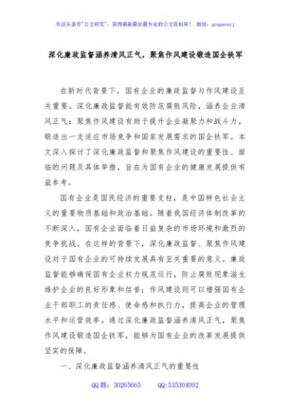 / 深化廉政监督涵养清风正气,聚焦作风建设锻造国企铁军