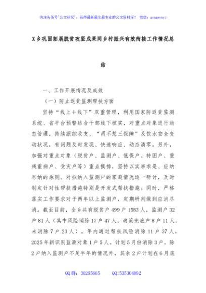 / X乡巩固拓展脱贫攻坚成果同乡村振兴有效衔接工作情况总结