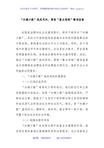 / “关键少数”规范用权,聚焦“重点领域”精准监督