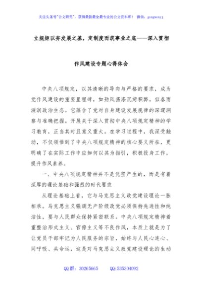 / 立规矩以夯发展之基,定制度而筑事业之底——深入贯彻作风建设专题心得体会