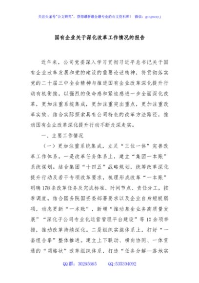 / 国有企业关于深化改革工作情况的报告