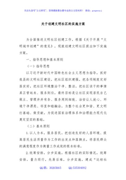 / 关于创建文明社区的实施方案