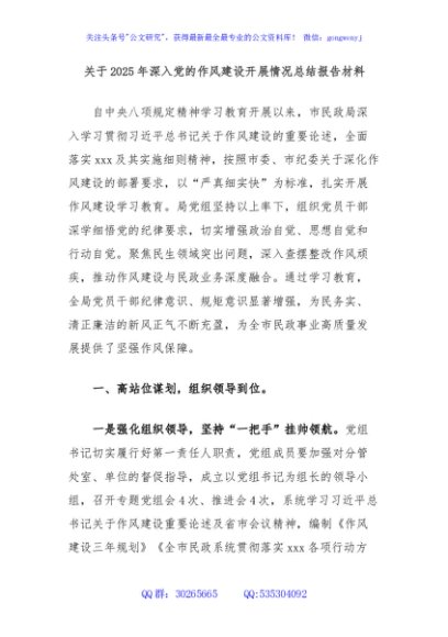 / 关于2025年深入党的作风建设开展情况总结报告材料