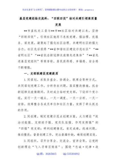 / 基层党建经验交流料:“四联四促”结对共建引领高质量发展