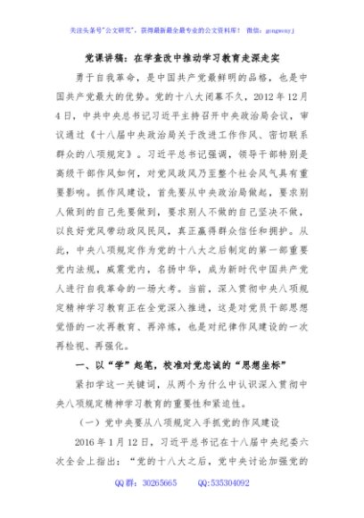 / 党课讲稿:在学查改中推动学习教育走深走实