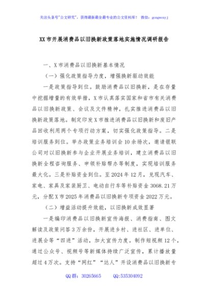/ XX市开展消费品以旧换新政策落地实施情况调研报告