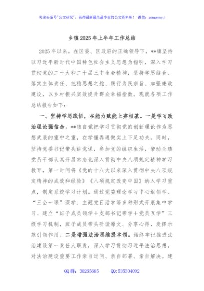 / 乡镇2025年上半年工作总结