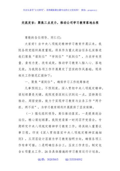 / 交流发言:聚焦三点发力,推动公司学习教育落地生根