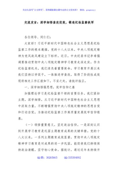 / 交流发言:深学细悟查改促效,锻造纪检监察铁军