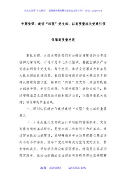 专题党课:建设“四强”党支部,以高质量机关党建引领保障高质量发展