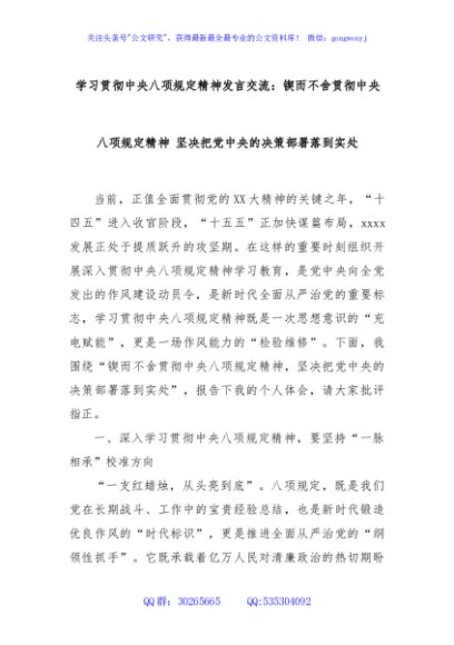 / 学习贯彻中央八项规定精神发言交流:锲而不舍贯彻中央八项规定精神 坚决把党中央的决策部署落到实处