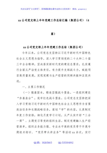 / (4篇)xx公司党支部上半年党建工作总结汇编(集团公司)