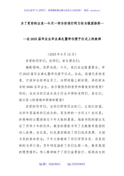 为了更好的出发—今天一师为你饯行明日你为强国添彩——在2025届毕业生毕业典礼暨学位授予仪式上的致辞