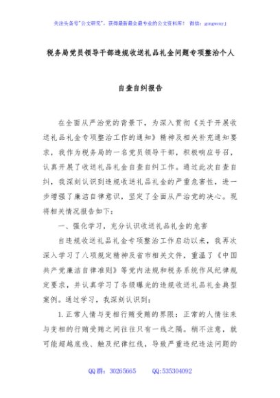 / 税务局党员领导干部违规收送礼品礼金问题专项整治个人自查自纠报告