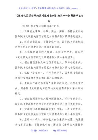 / 《党政机关厉行节约反对浪费条例》相关审计问题清单130条
