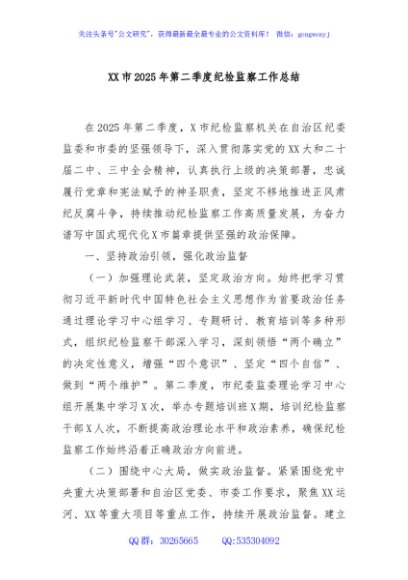 / XX市2025年第二季度纪检监察工作总结
