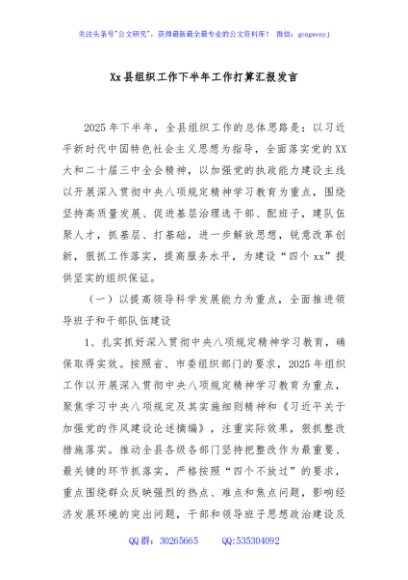 / Xx县组织工作下半年工作打算汇报发言