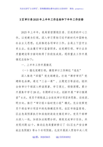 / X区审计局2025年上半年工作总结和下半年工作安排