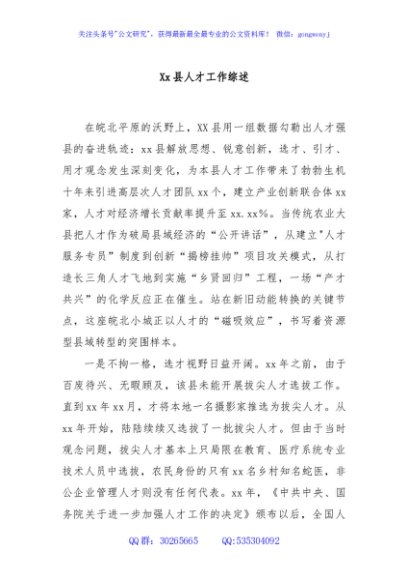 / Xx县人才工作综述