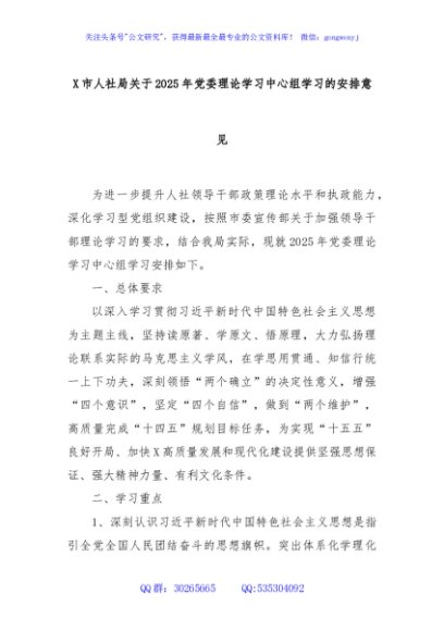 / X市人社局关于2025年党委理论学习中心组学习的安排意见