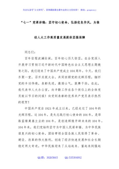 / “七一”党课讲稿:坚守初心使命,弘扬优良作风,为推动人大工作高质量发展提供坚强保障