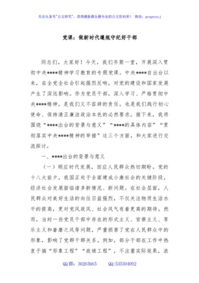 / 党课:做新时代遵规守纪好干部