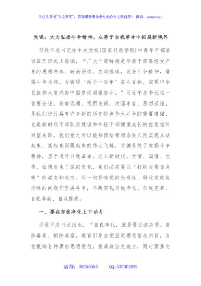 / 党课:大力弘扬斗争精神,在勇于自我革命中拓展新境界