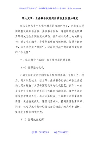 / 理论文章:业务融合赋能跑出高质量发展加速度
