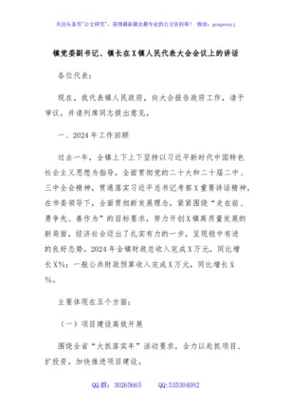 / 镇党委副书记、镇长在X镇人民代表大会会议上的讲话