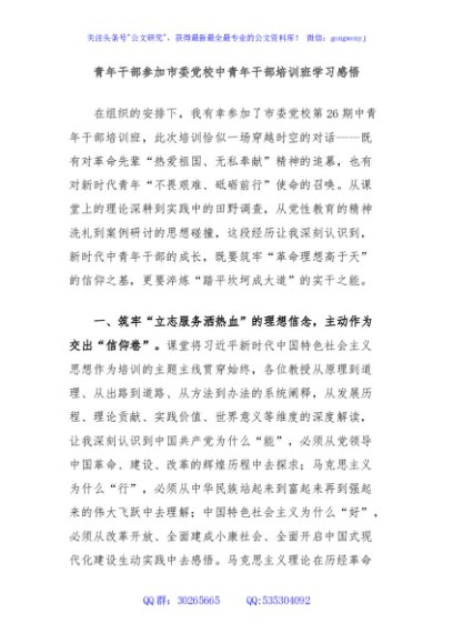 / 青年干部参加市委党校中青年干部培训班学习感悟